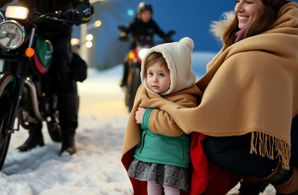 A menina estava descalça na neve à espera da mãe — até que os motociclistas aparecerem na estrada